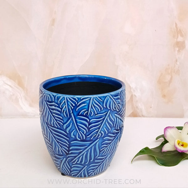 • Beautiful Blue and Green colured ceramic planter,  Compatible with the Moss and Coconut husk Phalaenopsis and oncidium orchids plants listed on the website.