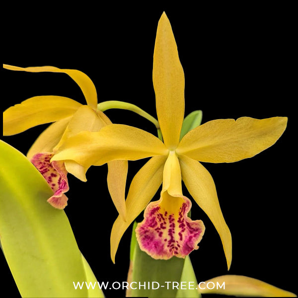 Cattleya Haiku Dawn is a hybrid orchid created by crossing Br. Richard Mueller with Rhyn. Goldenzella, resulting in striking fresh yellow blooms.This hybrid has been registered in the year 1999. The parent Bc. Richard Mueller is a robust variety known for its easy flowering and distinctive yellow flowers marked with small spots on the lip, some flowers could have markings on the petals & sepals as well. Like brassavola orchids, it thrives with a drying period between waterings, making it simple to cultivate.