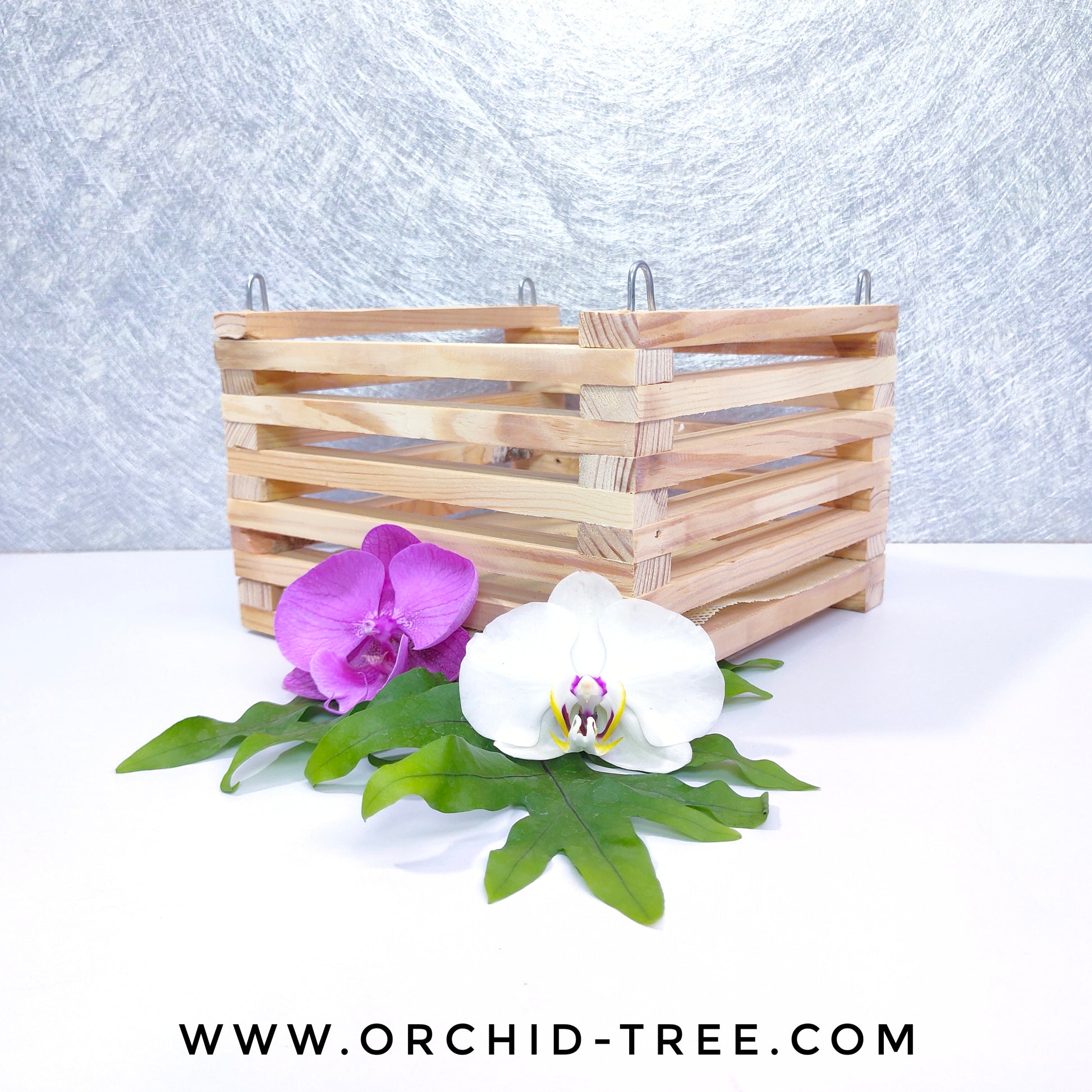 Many Orchids prefer to grow in an open slotted wooden basket so their roots can breathe. These orchid baskets are made of pinewood which is used for exterior products like Gates and planters as the pinewood can sustain weather conditions like rain and sun for some years. These baskets can also be used as planters to bring your orchids indoors when they are in blooms.