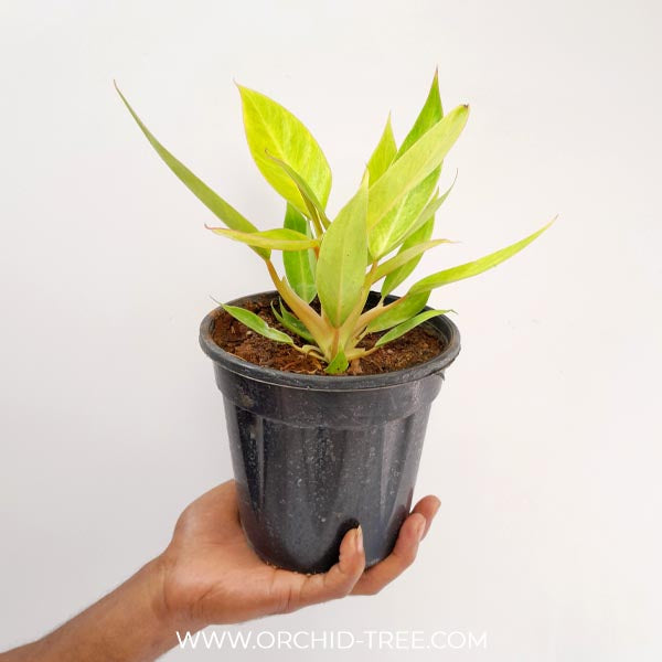 Philodendron 'Calkins Gold' is a rare and coveted variety known for its vibrant golden-green leaves. This distinctive cultivar is uncommon, making it a prized addition for collectors. It prefers bright, indirect light and should be shielded from direct sunlight. Consistent pruning and careful watering are key to avoiding yellow leaves and root rot. Notably, this philodendron features upright leaves with compact spacing and lacks any red tint on the petioles unlike the Philo Painted Lady